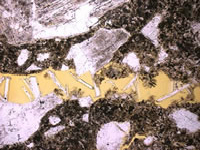放大的圖片清楚地顯示 裂縫中的粗糙長晶體 和細小針狀晶體 |